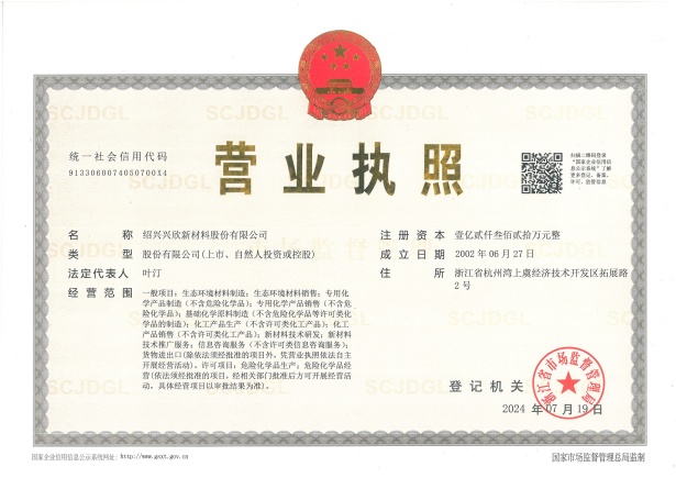 紹興興欣新材料股份有限公司成立于2002年06月27日,占地面積122畝,位于杭州灣上虞經(jīng)濟(jì)技術(shù)開(kāi)發(fā)區(qū)拓展路2號(hào),現(xiàn)有職工200余人,專(zhuān)業(yè)技術(shù)人員50余人;博士、碩士研究生30余人組成的一支知識(shí)型、專(zhuān)業(yè)化的技術(shù)科研團(tuán)隊(duì)。公司面向全球市場(chǎng),專(zhuān)業(yè)開(kāi)發(fā)電子化學(xué)品、環(huán)?;瘜W(xué)品、醫(yī)藥中間體、高分子材料等先進(jìn)新材料重點(diǎn)領(lǐng)域的省級(jí)科技型企業(yè);建有浙江上虞、安徽東至兩個(gè)生產(chǎn)基地。目前為“國(guó)家高新技術(shù)企業(yè)”、浙江省“隱形冠軍”企業(yè)、浙江省專(zhuān)精特新中小企業(yè);建有“省級(jí)”研究開(kāi)發(fā)中心,共建天津大學(xué)浙江紹興研究院電子化學(xué)品研發(fā)中心。